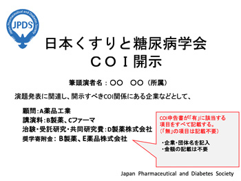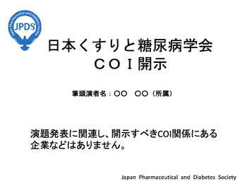 一般社団法人日本くすりと糖尿病学会の指針に基づき、利益相反の状況を発表時に提示してください。